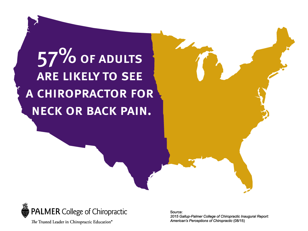 This back and neck pain can easily interrupt important parts of your life, causing pain, suffering, and making you uncomfortable. The Palmer Institute of Chiropractic found that 57% of adults are likely to see a chiropractor for neck or back pain. With other half of the adult population agreeing on this, it becomes abundantly clear why chiropractors are seen as the ideal choice: they know what they are doing when it comes to neck and back pain.